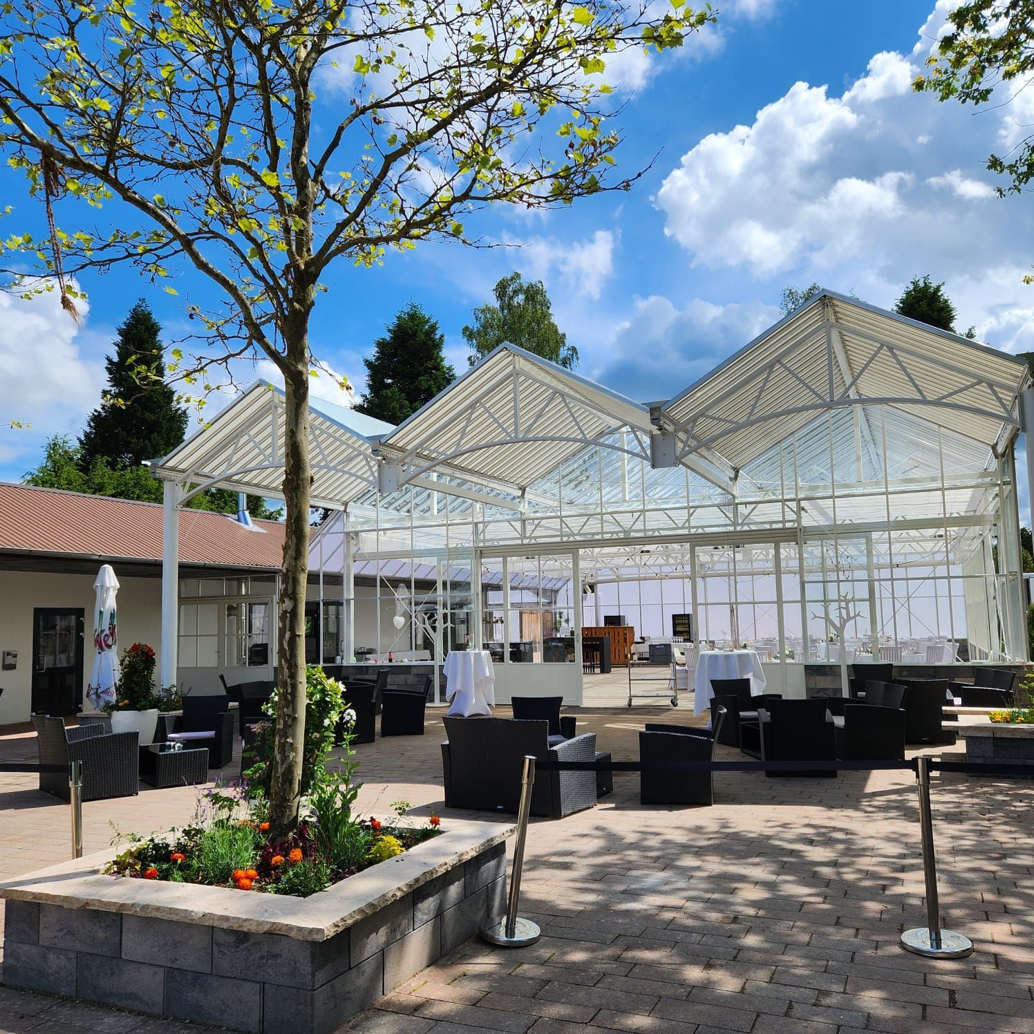 La nostra location da sogno offre l'atmosfera perfetta per il giorno più bello e importante della vita di una giovane coppia. Immersa nel più grande parco di rododendri della Germania meridionale, è difficile immaginare un'atmosfera più colorata, soprattutto durante la stagione della fioritura. L'edificio moderno ed elegante è circondato da un'ampia area esterna alberata, che può essere utilizzata per diversi scopi.