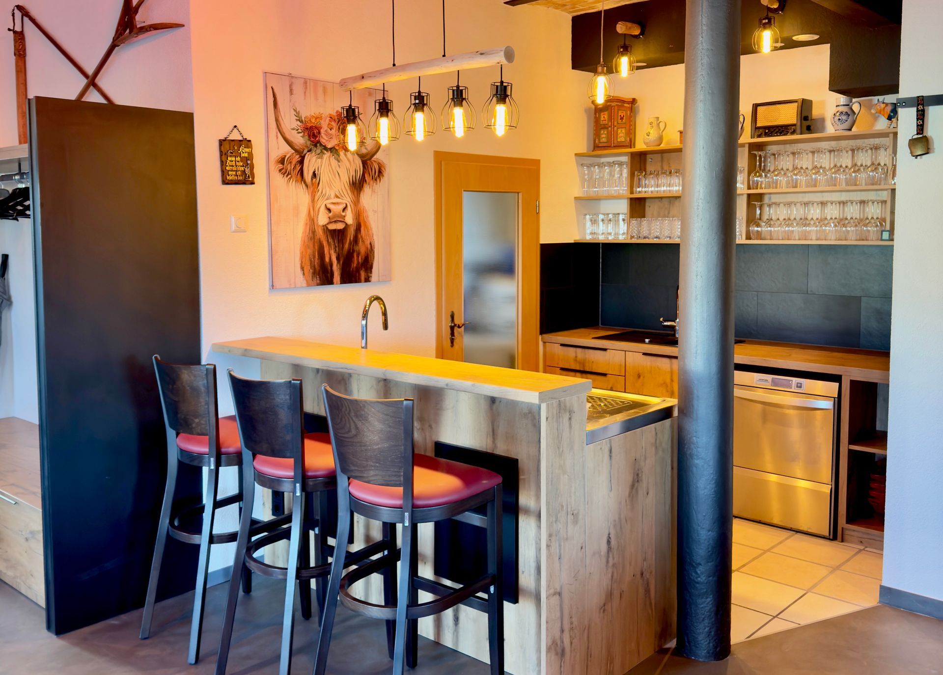 * Ausstattung: Gläser und eine Industriespülmaschine