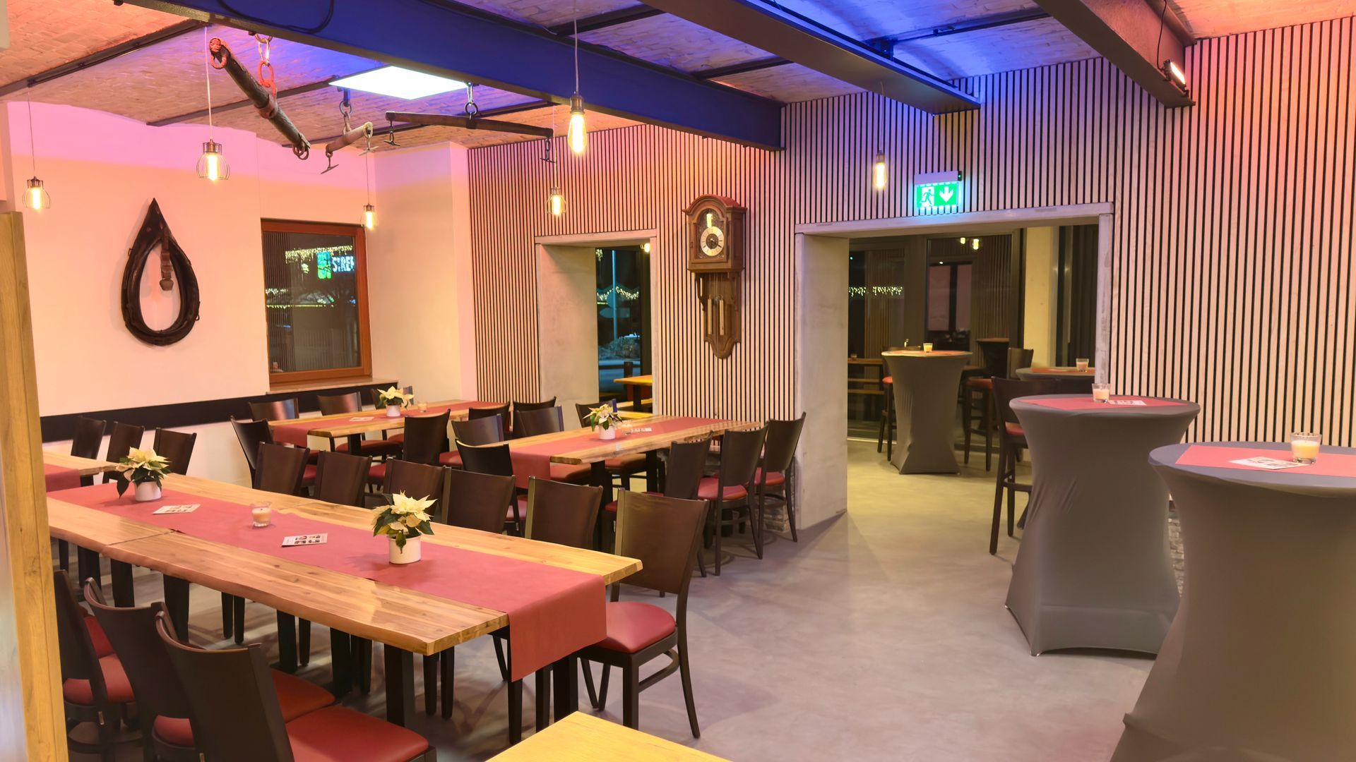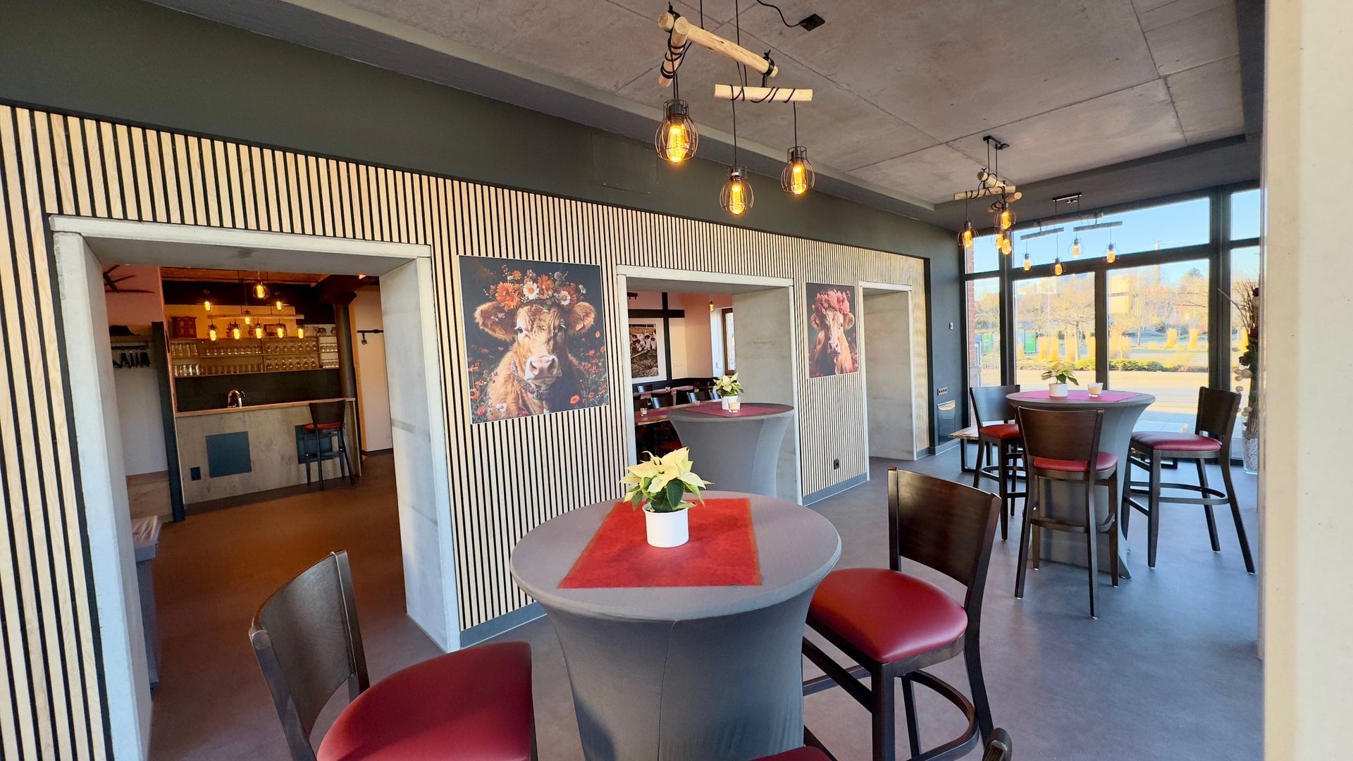 Unser einzigartiger Eventraum – ein ehemaliger, liebevoll modernisierter Kuhstall aus dem Jahr 1900, erweitert durch einen modernen Wintergarten – vereint rustikalen Charme mit moderner Ausstattung: